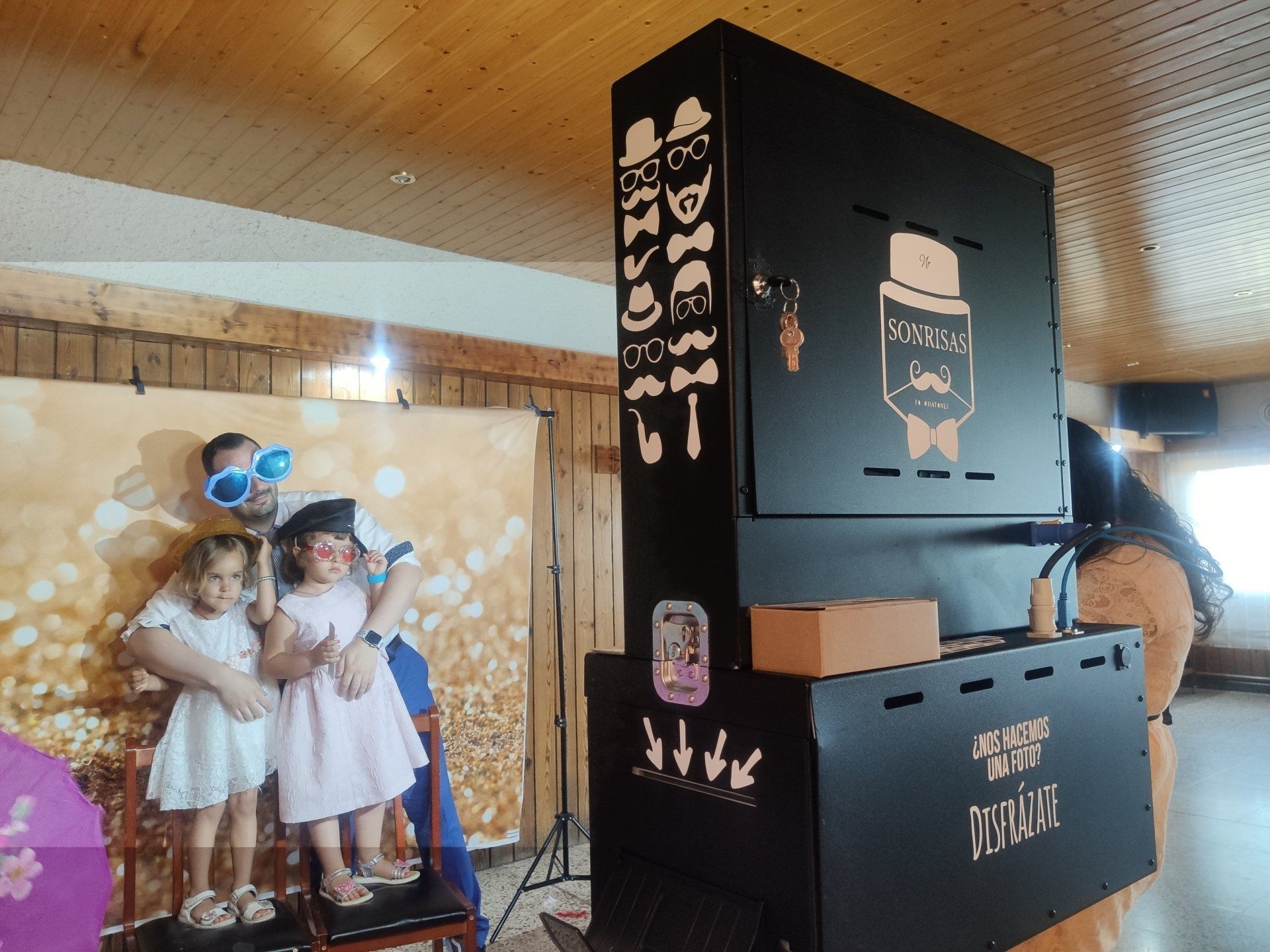 2) Con nuestro fotomaton ligero (sin cabina) podremos instalarlo en cualquier sitio para que tu y tus invitados disfrutéis del servicio totalmente personalizado.